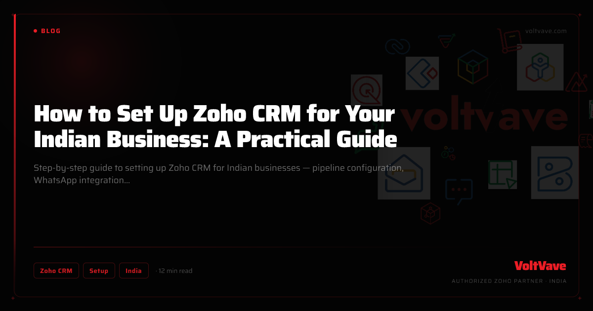 Most CRM implementations fail not because the software is bad, but because the setup doesn't match how the business actually works. This guide walks you through setting up Zoho CRM specifically for Indian sales teams — including the integrations and configurations that matter for the Indian market: WhatsApp, Razorpay, IndiaMart leads, and local telephony.