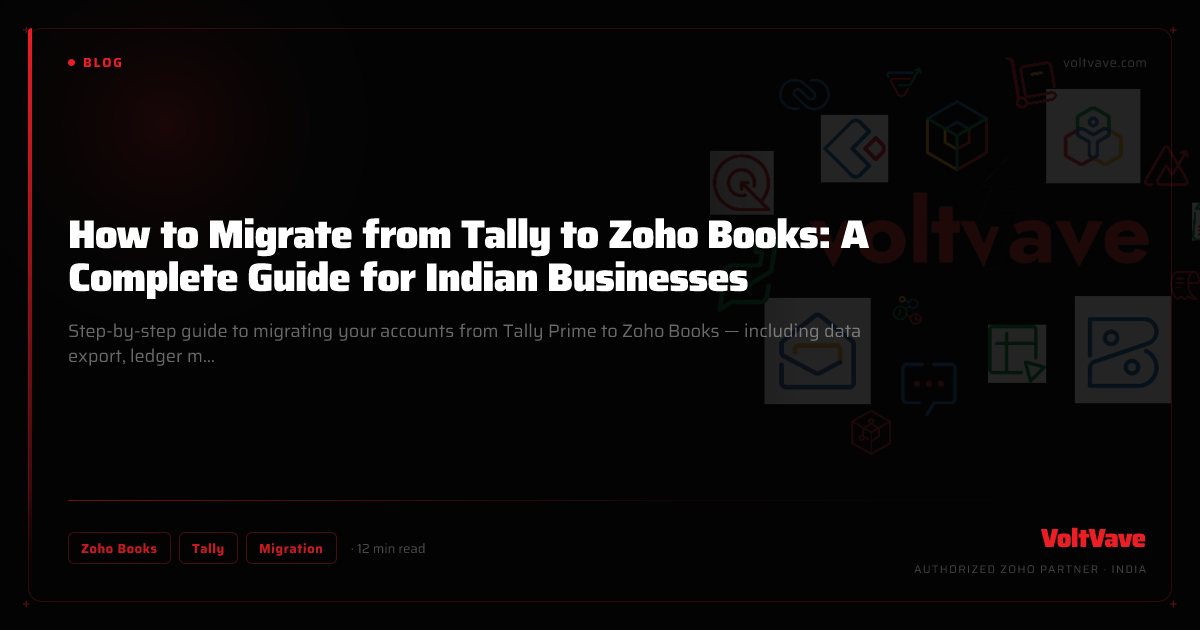 VoltVave handles Tally to Zoho Books migrations end-to-end — data export, contact import, opening balance verification, GST configuration, and first-month handholding. Get in touch if you'd like a no-cost assessment.