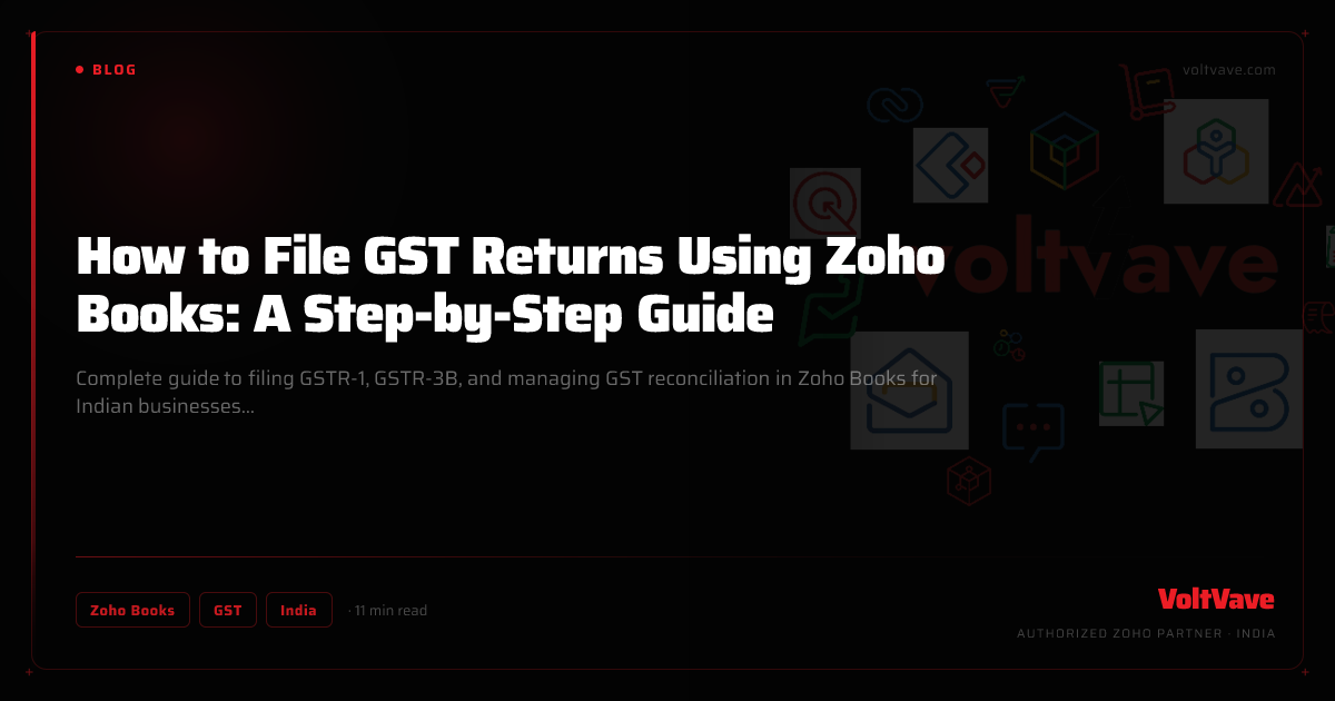 If you're setting up Zoho Books GST for the first time or troubleshooting filing errors, VoltVave can help. We handle Zoho Books implementations including complete GST configuration, e-invoicing setup, and first-return handholding.