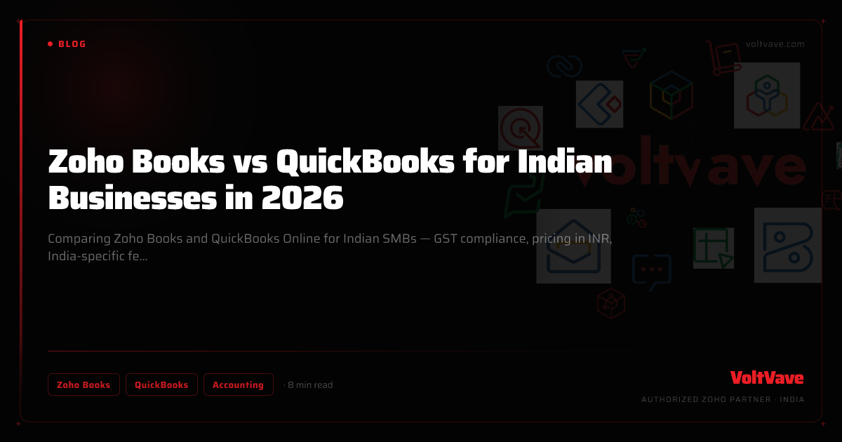 VoltVave handles Zoho Books implementations and migrations for Indian businesses — including migrations from QuickBooks. Get in touch for a free assessment.