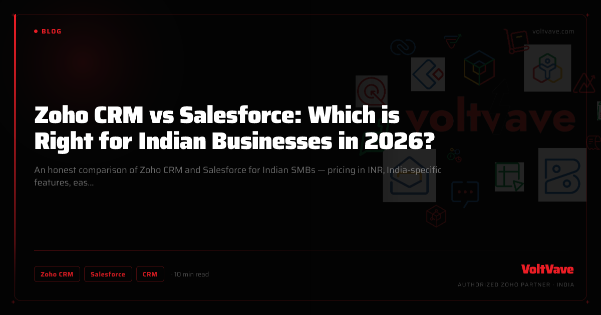 If you're migrating from Salesforce to Zoho CRM, or setting up Zoho CRM for the first time, VoltVave can handle the implementation. We're an authorized Zoho partner with experience migrating complex sales data and configuring automations for Indian businesses.